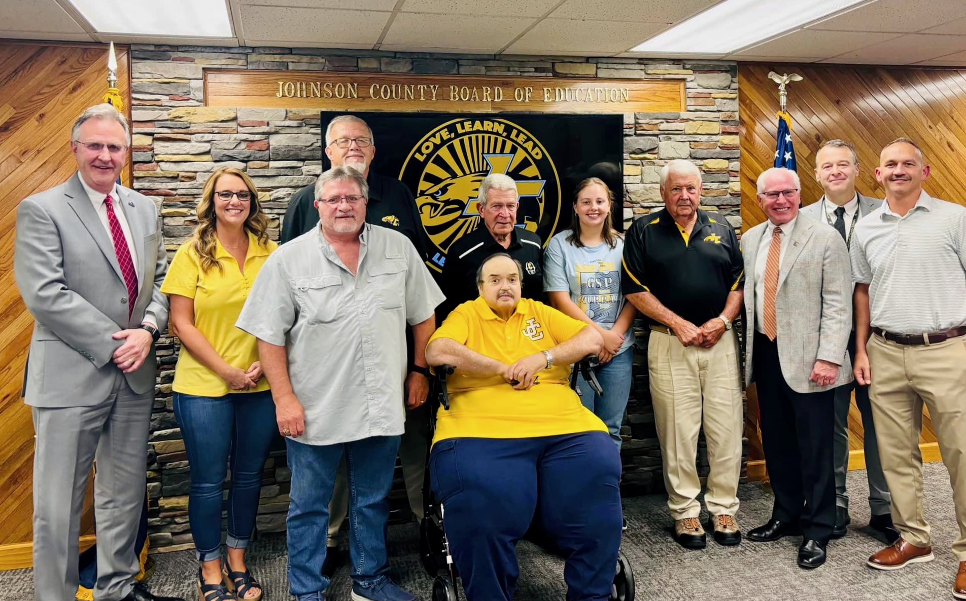 Cumberland County High School students Tyler Thacker, Sadie Arterburn, Evan Stotts, Aidan Capps and Taylor Craig, pictured at far right, watch a recent meeting.