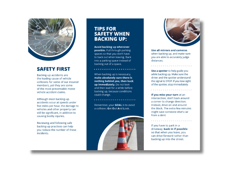 Backing-up accidents are the leading cause of vehicle collisions for some of our insured members, yet they are some of the most preventable motor vehicle accident claims.