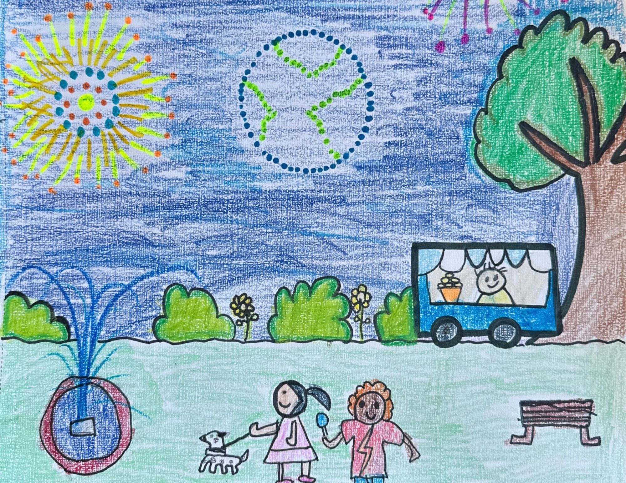 Artist's statement: "I love fair week in Hart County, it brings our community together, this is why I chose to draw the fair at night. I am 10 years old and I love drawing, painting and coloring. I created this picture with oil pastels and paint markers."