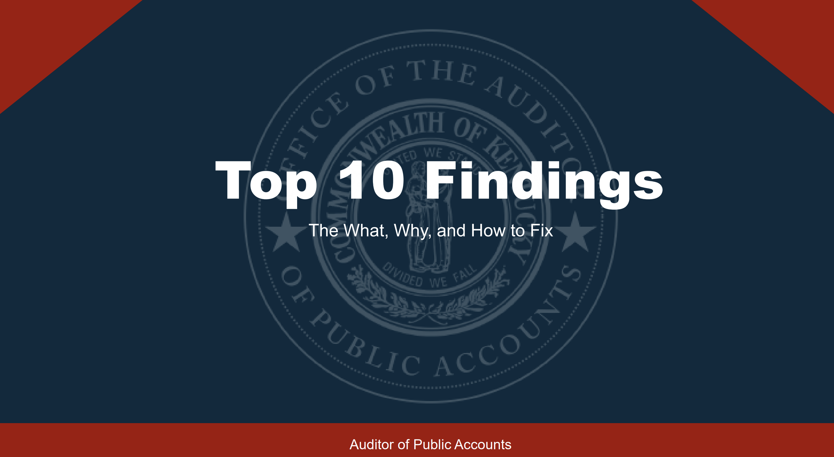 In conjunction with the office of Kentucky Auditor Allison Ball, the KACo Leadership Institute hosted a webinar to review the top 10 audit findings for counties along with solutions to avoid those issues. The training was led by Jim Royse, Executive Director Executive Director of the Office of Local Government Audits, and Liz Lowe, Quality Assurance Manager.