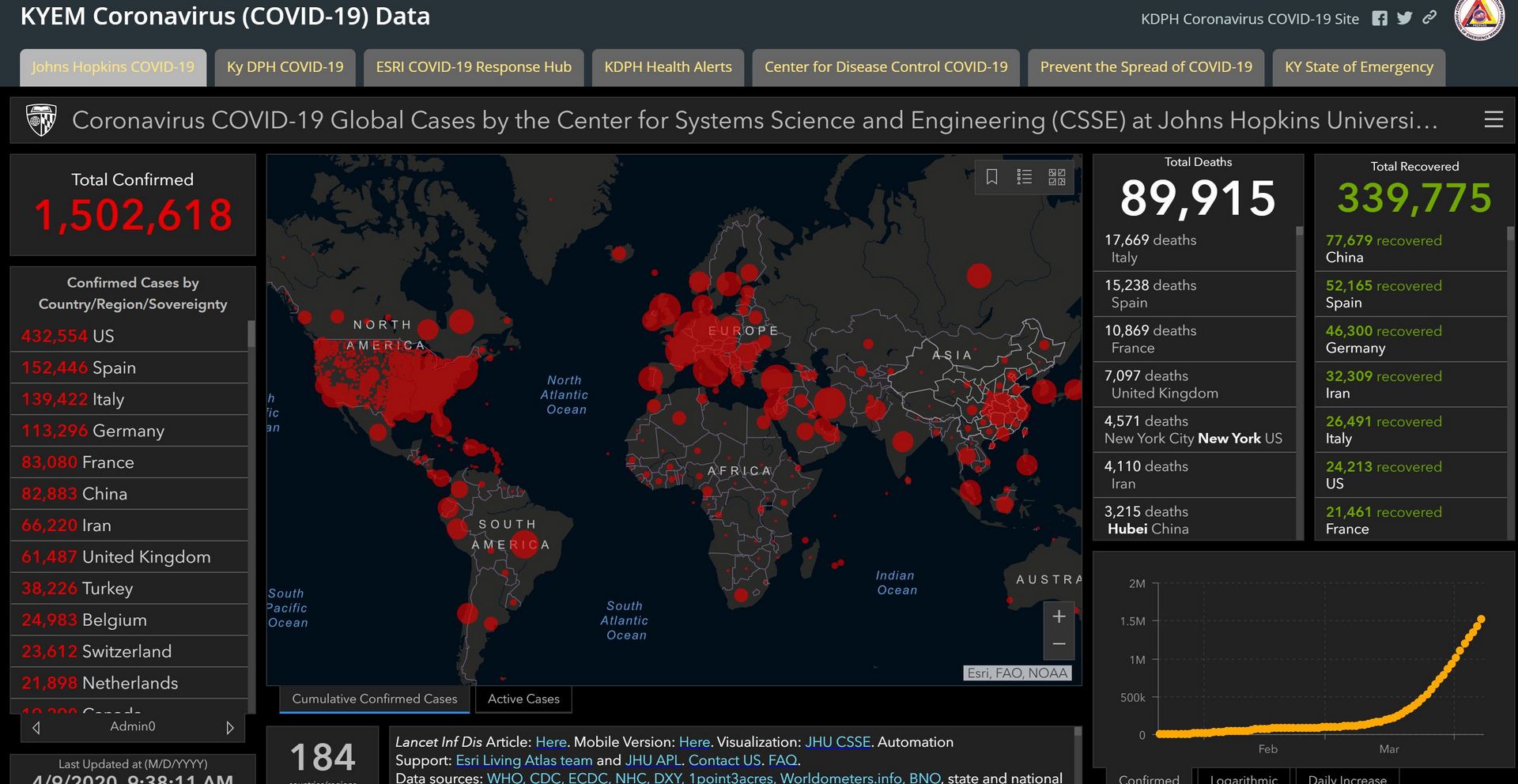 Kentucky Emergency Management has developed an interactive dashboard to track COVID-19 cases, deaths and the number of people that have recovered. You can explore international, national, state and county-level data.