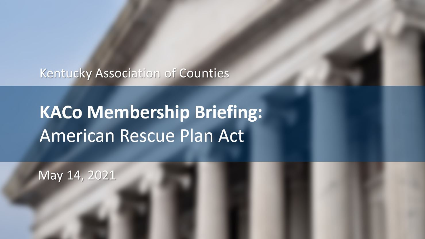 On May 14, 2021, KACo hosted a membership briefing on new Treasury guidance on the use of American Rescue Plan Act funding for counties.